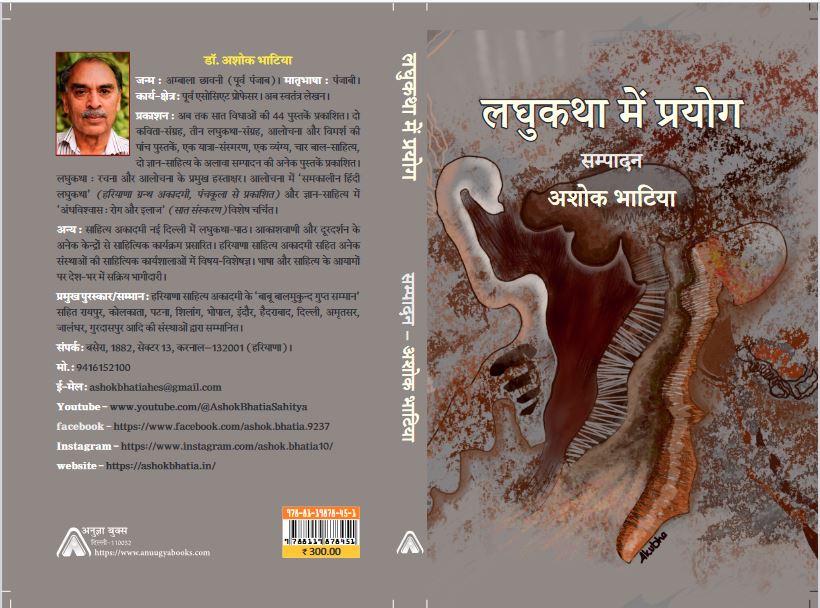 हाल ही में जाने माने लेखक, आलोचक और लघुकथा के प्रमुख हस्ताक्षर अशोक भाटिया की नई पुस्तक – लघु कथा में प्रयोग, का विमोचन राष्ट्रीय लघुकथा उत्सव, 2023 पश्चिम बंगाल में हुआ। पुस्तक का प्रकाशन अनुज्ञ बुक्स द्वारा किया गया है। लघुकथा में प्रयोग, राष्ट्रीय और अंतर्राष्ट्रीय लघुकथाओं में प्रयोगों पर यह एक नई दृष्टि प्रदान करने वाली पुस्तक है। यह पुस्तक लघुकथा के नए और पुराने दोनों तरह के लेखकों के लिए बेहद जरूरी नजरिया प्रस्तुत करती है।